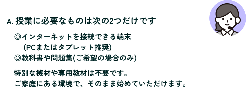 教材費:原則不要(市販教材を希望される場合のみ実費)