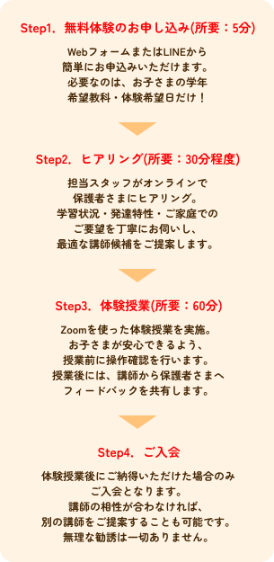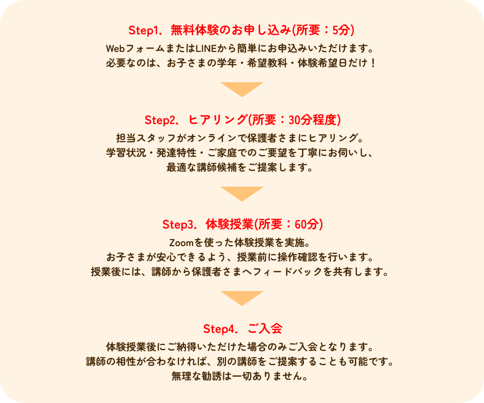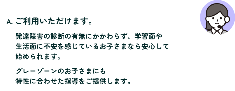 発達障害の特性を持つお子さまが安心して学べるよう、講師は専門研修を受け、心のケアや気持ちの切り替えにも配慮しています。授業はお子さまの性格や特性に合わせて進め、無理のない関わり方を重視。相性を見ながら講師を選べる仕組みで、ご家庭にとって安心できる学習環境を整えています。