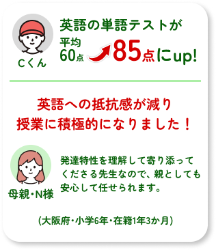 発達障害の特性に配慮し、一人ひとりの理解度やペースに合わせた学習プランを作成。小さな成功体験を積み重ねることで「できた!」という自信を育みます。定期的な振り返りや学習レポートを通じて、学力の向上だけでなく自己肯定感の成長を実感いただけます。